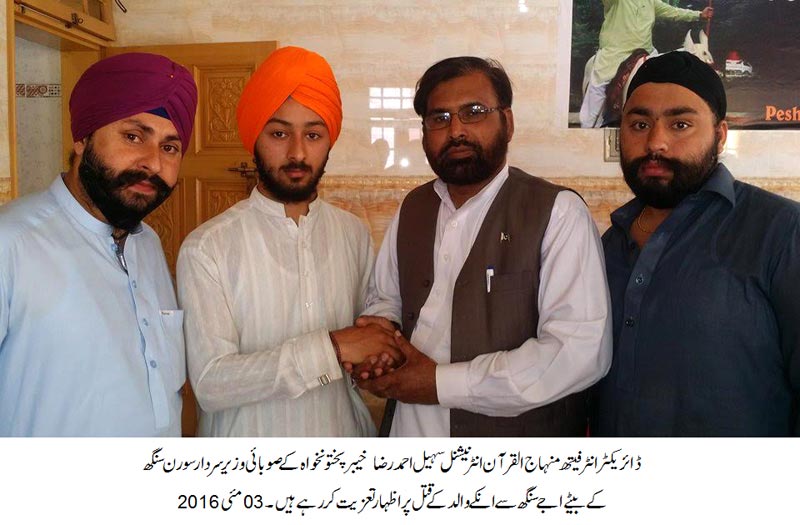 خیبر پختونخواہ کے صوبائی وزیر اقلیتی امور سردار سورن سنگھ کی یاد میں سکھ برادری کی جانب سے پشاور کے تاریخی گردوارہ بھائی جوگا سنگھ میں تعزیتی پروگرام منعقد ہوا، جس میں منہاج القرآن انٹر فیتھ ریلیشنز کے ڈائریکٹر سہیل احمد رضا سمیت اہم سیاسی، سماجی و مذہبی شخصیات نے شرکت کی۔ تعزیتی ریفرنس میں سکھ برادری کے جملہ رہنماؤں سردار تارا سنگھ چیئرمین پربندھک کمیٹی، سردار صاحب سنگھ، سردار چرن سنگھ، سردار بشن سنگھ، سردار ریویندر سنگھ اور بالخصوص ڈاکٹر سردار سورن سنگھ کے بیٹے سردار اجے سنگھ کے علاہو متروکہ وقف املاک بورڈ حکومت پاکستان کے چیئرمین اور دیگر عہدیداران بھی موجود تھے۔